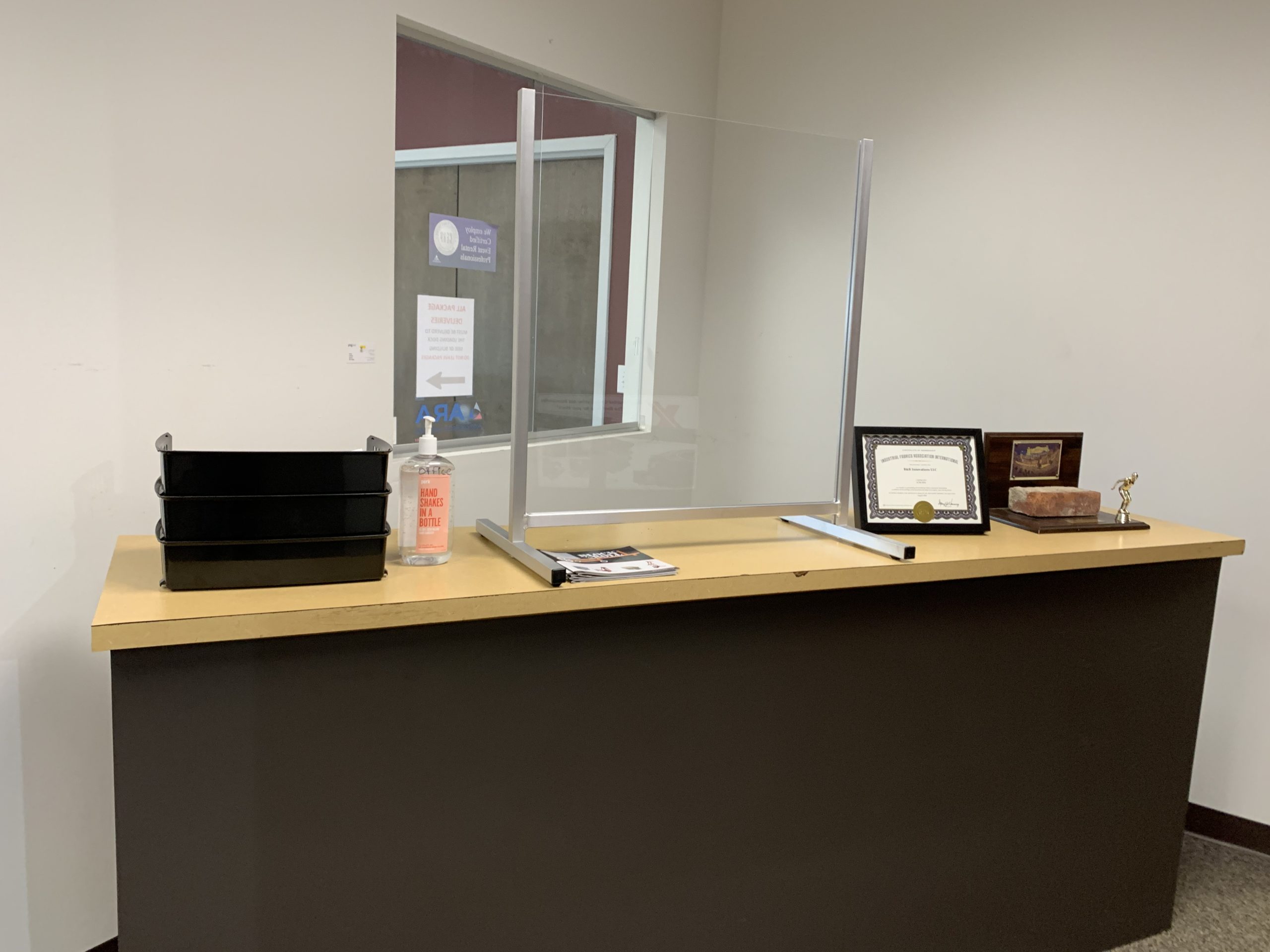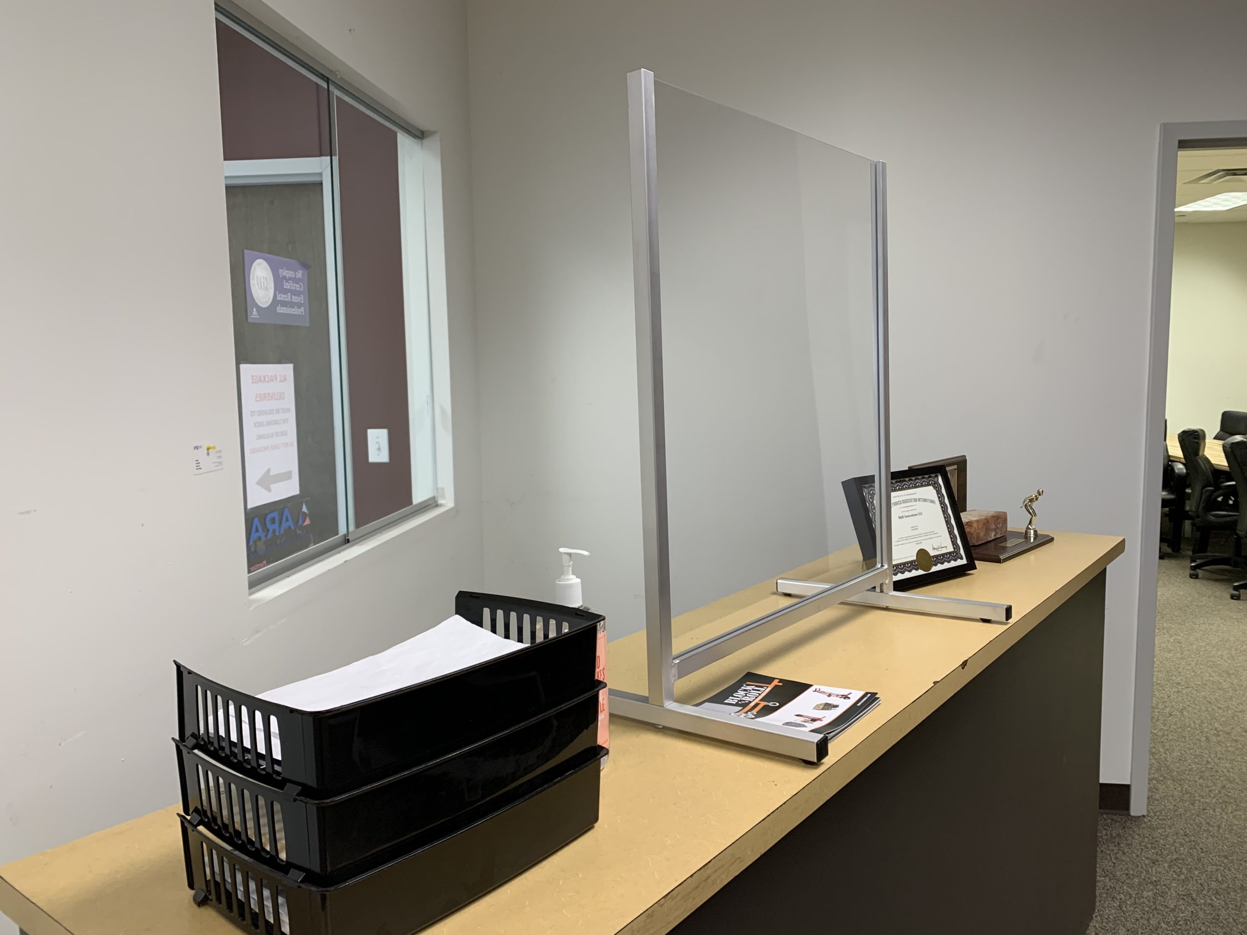 Office Desk or high Counter  free standing Sneeze-Block Sneeze and cough guard with 2″ pass-thru